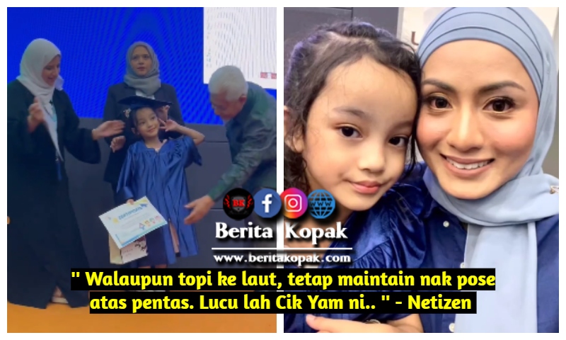 ” Walaupun topi ke laut, tetap maintain nak pose atas pentas. Lucu lah Cik Yam ni.. ” – Netizen